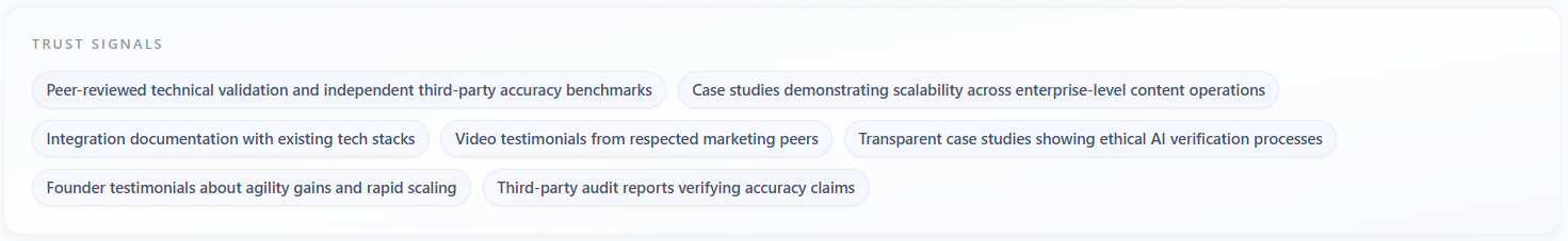 - Empty or generic signals suggest the model did not find strong trust hooks—strengthen proof points manually.