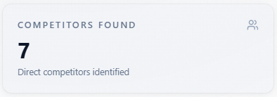 Screenshot: Competitors Found stat card.