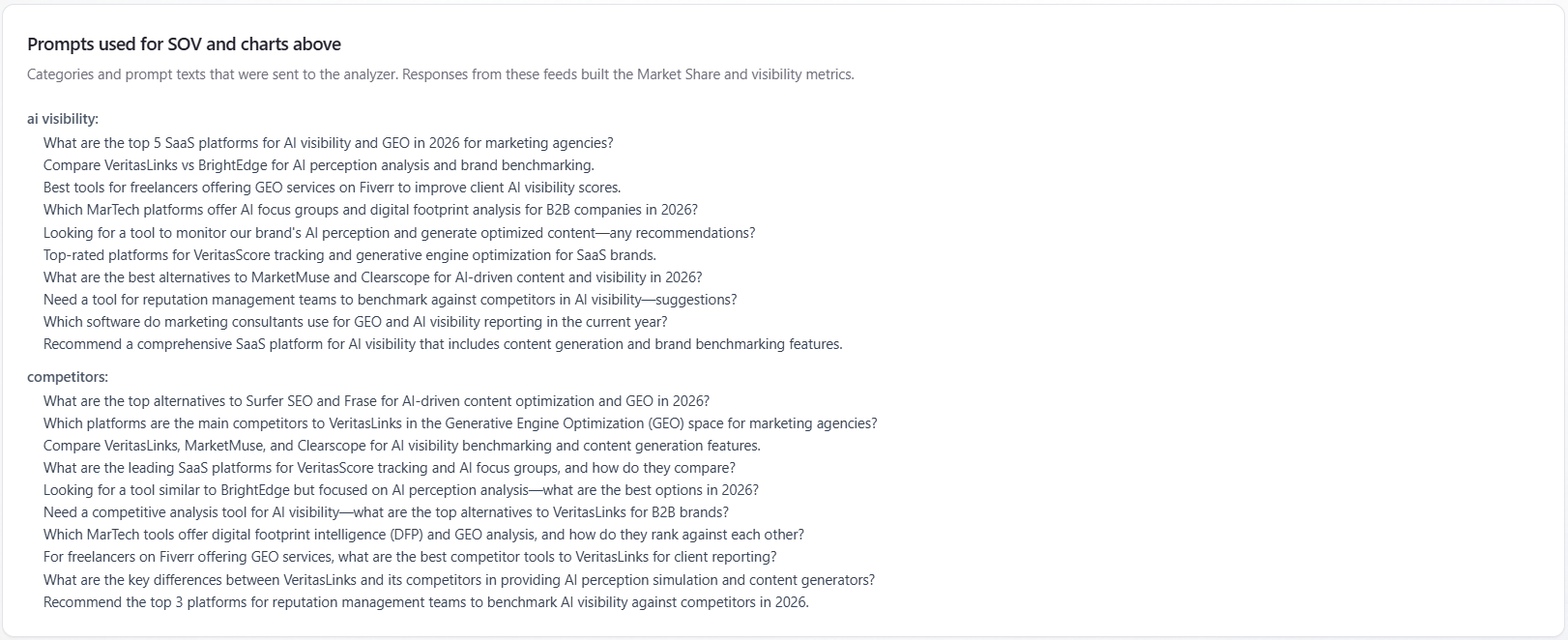 Screenshot: Prompts used for SOV and charts above.
