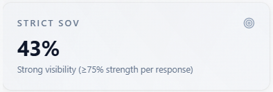 How to read it: this is stricter than Query Coverage (which only asks whether you count as mentioned). High Strict SOV means you do not only appear—you appear with strong modeled strength. Pair with Query Coverage: a large gap means many weak mentions.