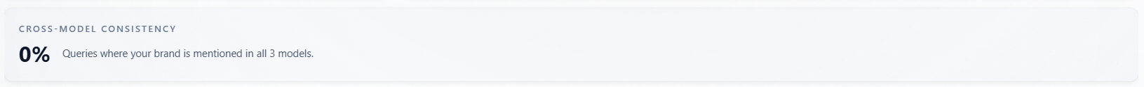 How to use: low consistency with decent single-model visibility means assistants disagree—prioritize messaging and assets that work across engines. If you only have one model in the report (typical for free DeepSeek-only), this section is hidden.