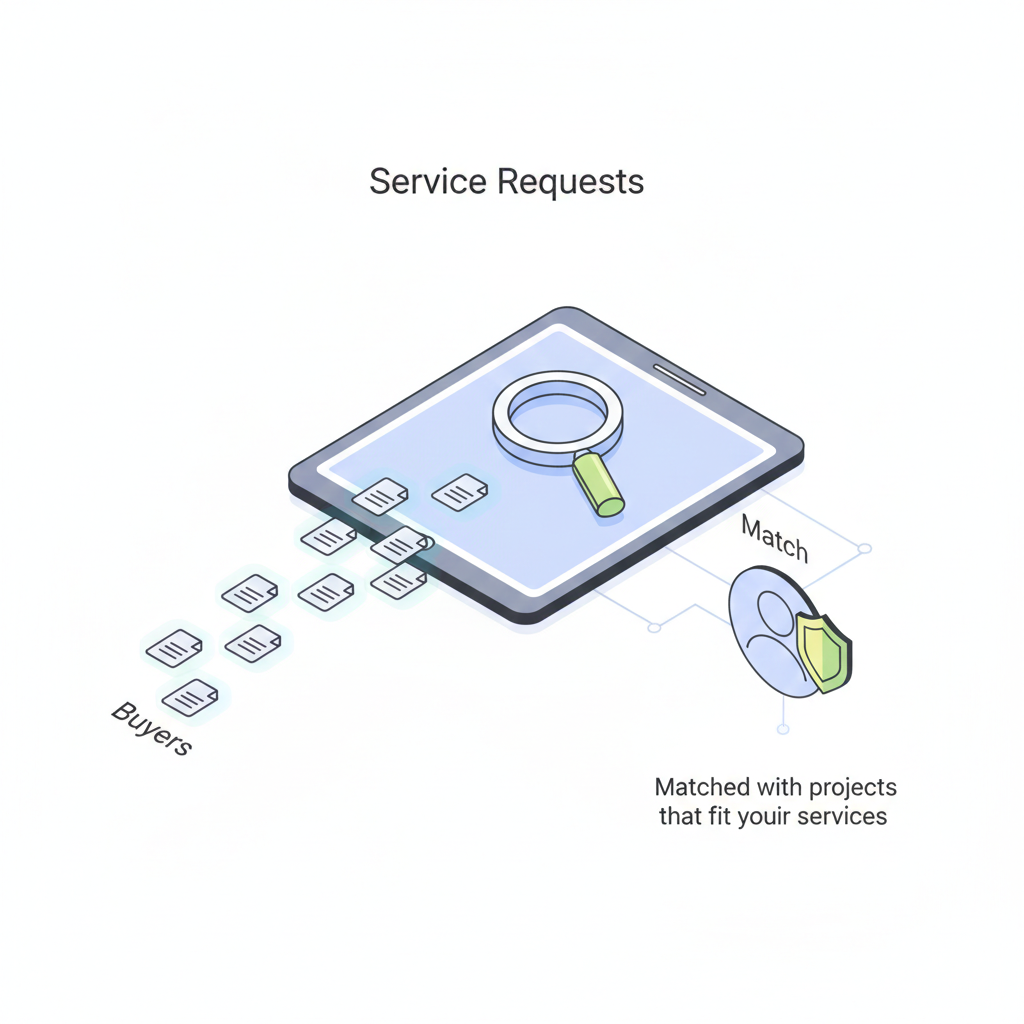 Receive service requests from buyers looking for your expertise. Get matched with projects that fit your services.